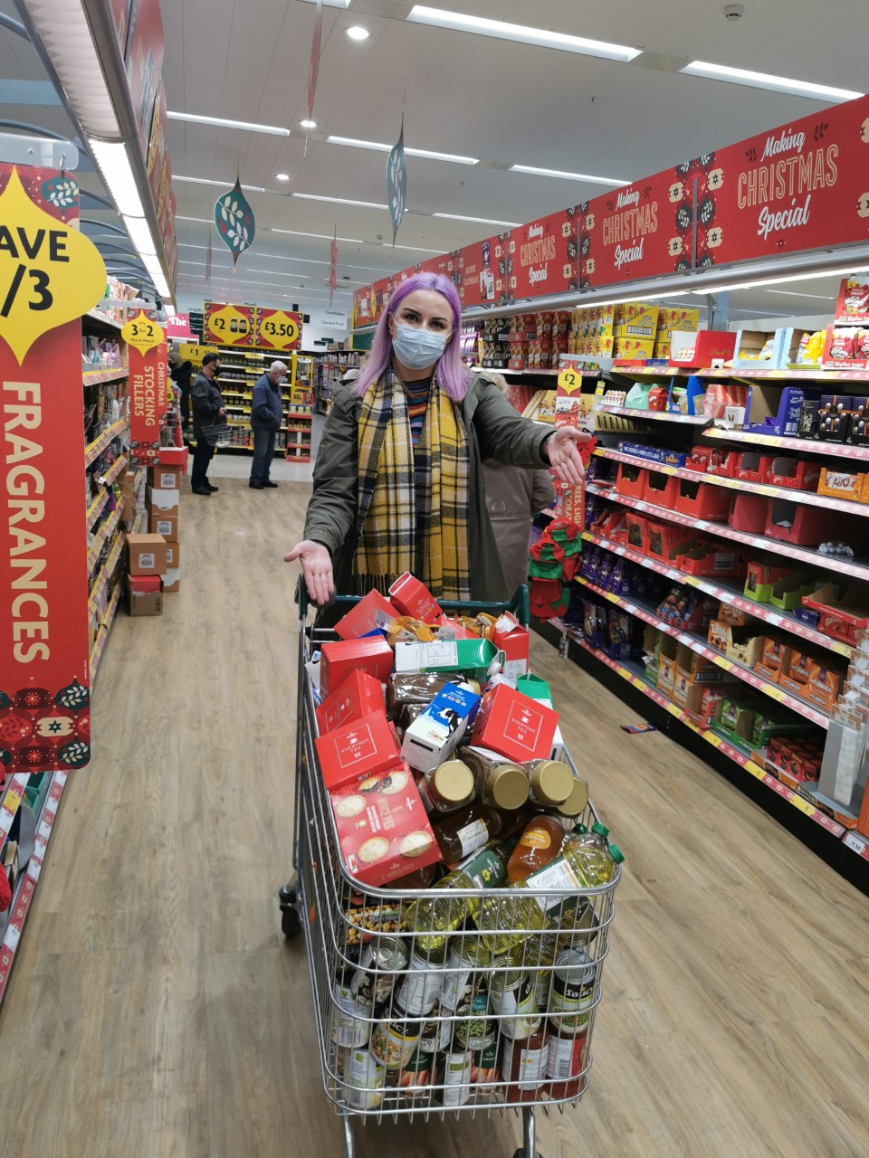 We were delighted to see everyone really get into the festive spirit with their funky jumpers and fancy dress and raise a fantastic £165.00. The money was used to buy trolley loads (quite literally!) of essential household and food supplies – you can see the photos below of Sian and Julie from our office doing the supermarket trolley dash! All items were donated to the Renfrewshire Foodbank, who will distribute these to people and families in the area who are in need of emergency food and support this Christmas.